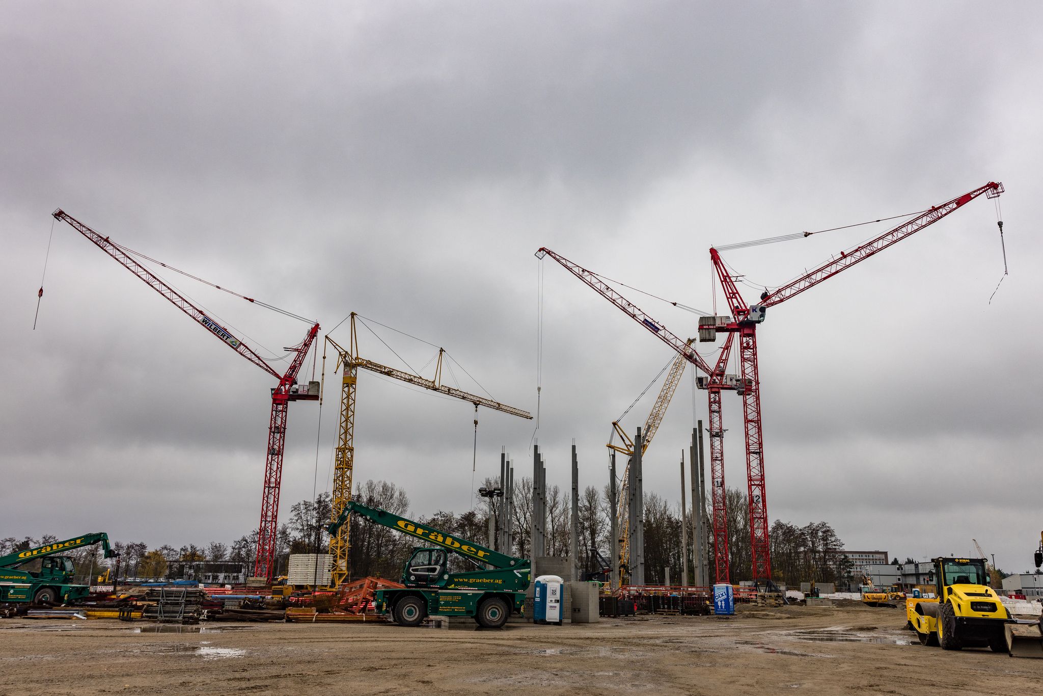 Hohe Kräne und ein paar Grundpfeiler ragen aus dem vom Regen durchweichten Boden. Viel lässt noch nicht erahnen, dass auf dem Gelände des ehemaligen Braunkohlekraftwerks im brandenburgischen Lübbenau ein milliardenschweres Rechenzentrum entstehen soll.